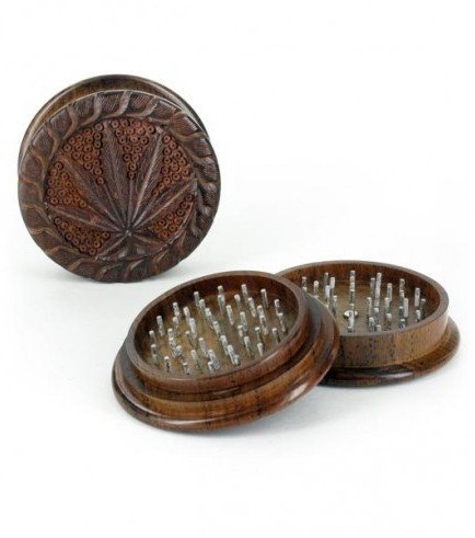 Der Grinder aus Holz ist ein erstklassiges Produkt, das aus zwei Teilen besteht. Er ist aus Rosenholz gefertigt und besitzt scharfe Metallzähne. Das geschnitzte Cannabisblatt auf der Oberseite lässt jeden wissen, wofür diese Mühle gebraucht wird. Da es sich um ein Naturprodukt handelt, können einzelne Farbtöne des Rosenholzes abweichen. In drei Größen erhältlich M, L und XL.